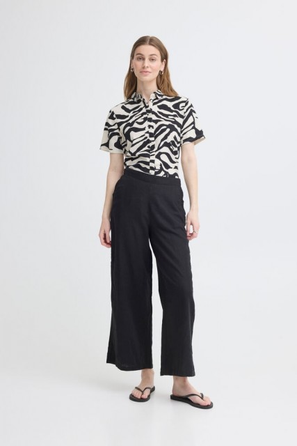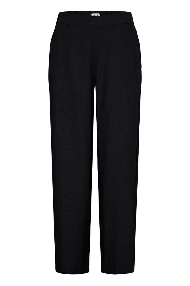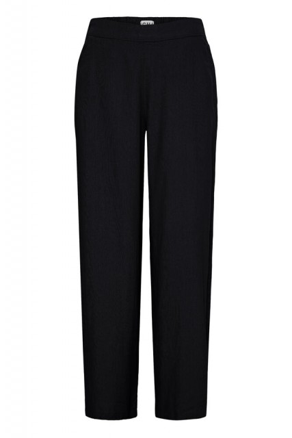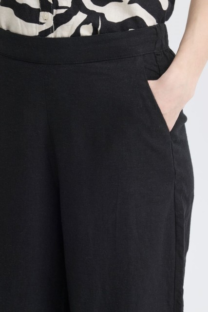 Linno er en komfortabel og tidløs bukse med et avslappet og moderne uttrykk. Den klassiske sorte fargen gjør den enkel å style til både hverdags og mer pyntede anledninger.