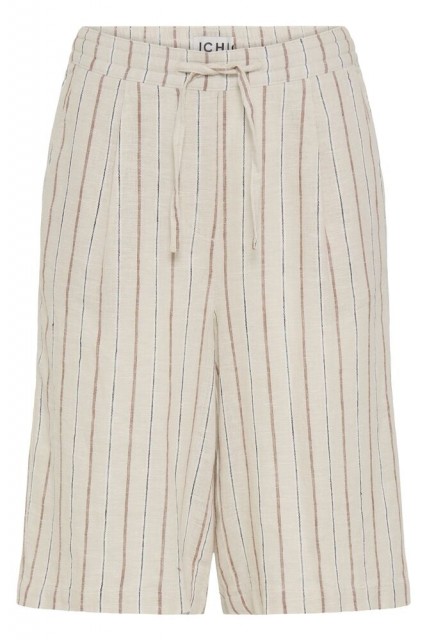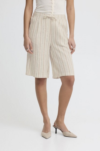 Linno er en komfortabel og stilren shorts med et avslappet uttrykk. De lyse tonene kombinert med brune striper gir et naturlig og sommerlig preg, som gjør den enkel å style til både hverdags og ferie.