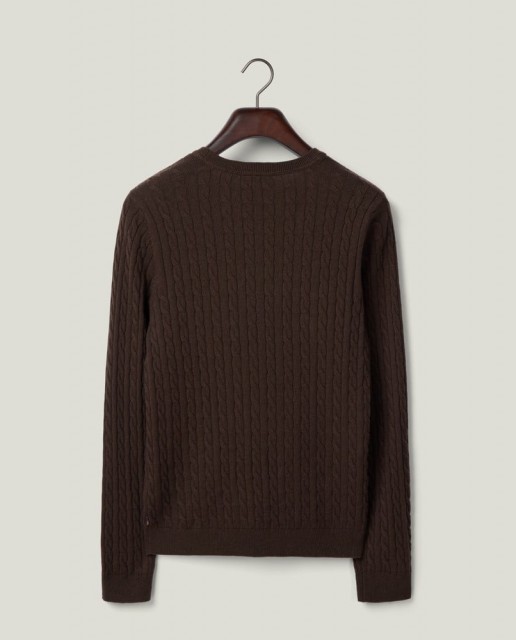 Raglanermene gir et avslappet snitt og gjør den behagelig å bevege seg i, mens det klassiske kabelstrikkmønsteret tilfører struktur og karakter.