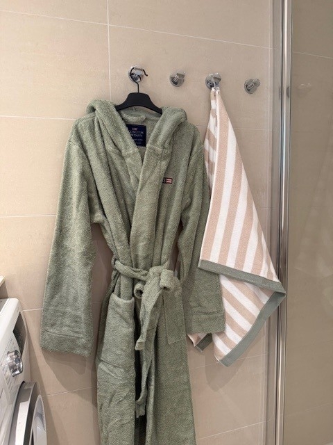 LEXINGTON Quinn morgenkåpe med hette, vintage green Myk og deilig morgenkåpe med hette og frontlommer og knyting i midjen. PrisNOK1 995,00 inkl. mva. På lager: 2 stk. StørrelseML Antall Kjøp Ønskeliste Lagerstatus: På lager: 2 stk. Artikkelnr.: 12510300-8010-M Produsent: LEXINGTON Del dette Produktinfo Vaskeråd Produktanmeldelser (0) Den herlige badekåpen har en enkel unisex passform. Er du dame anbefaler vi at du velger en størrelse mindre enn den du vanligvis bruker. 90% bomull og 10% polyester • Vaskes på 60 grader• Strykes med middels temperatur• Tørketromles på høy temperatur• Må ikke klorblekes Skriv en produktanmeldelse og del dine erfaringer med dette produktet med andre kunder. Email Navn Din vurdering? 1 star 2 star 3 star 4 star 5 star 6 star Oppgi en tittel for anmeldelsen din Skriv inn produktanmeldelsen i feltet under