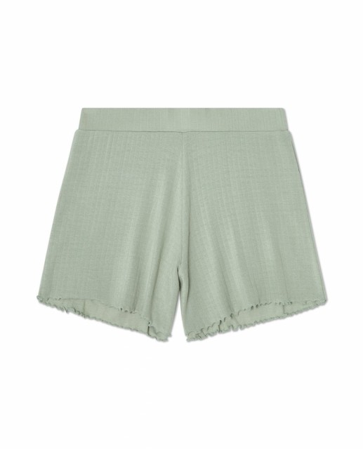 Den matchende buksen har normal midje med elastisk linning for god komfort og enkel bruk. Også her gir pointellestoffet og lettuce-kantene et gjennomført og sofistikert uttrykk, samtidig som materialet er mykt, pustende og behagelig mot huden.