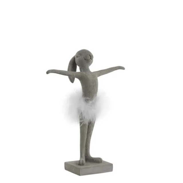 Denne bedårende kaninen, som inntar en fantasifull ballettposisjon, er perfekt for påskeinnredningen din. Laget av polyresin har denne påskepynten et unikt og elegant utseende. Det er lagt ekstraordinær oppmerksomhet til detaljer, med kaninens skjørt laget av myke fjær. Uansett om du vil pynte peisen, hyllen eller vinduskarmen, er denne vakre ballerina påskekaninpynten et perfekt tillegg til påskeinnredningen din.
