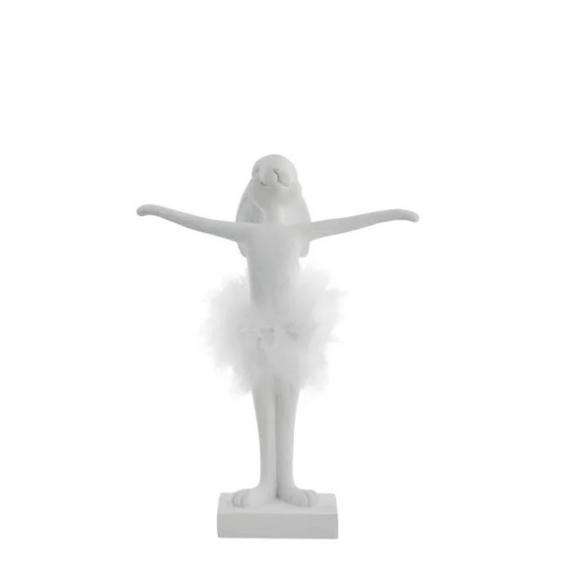 Denne bedårende kaninen, som inntar en fantasifull ballettposisjon, er perfekt for påskeinnredningen din. Laget av polyresin har denne påskepynten et unikt og elegant utseende. Det er lagt ekstraordinær oppmerksomhet til detaljer, med kaninens skjørt laget av myke fjær. Uansett om du vil pynte peisen, hyllen eller vinduskarmen, er denne vakre ballerina påskekaninpynten et perfekt tillegg til påskeinnredningen din.