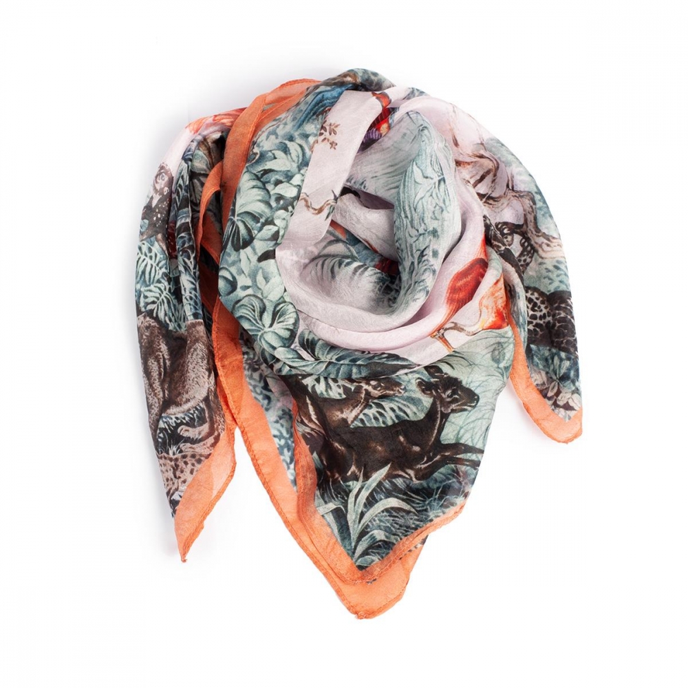 Det vakre jungelprintet gir et eksklusivt og levende uttrykk, enten du bruker skjerfet rundt halsen, i håret eller knyter det dekorativt på vesken. Et allsidig og elegant tilbehør – og et must-have i garderoben.